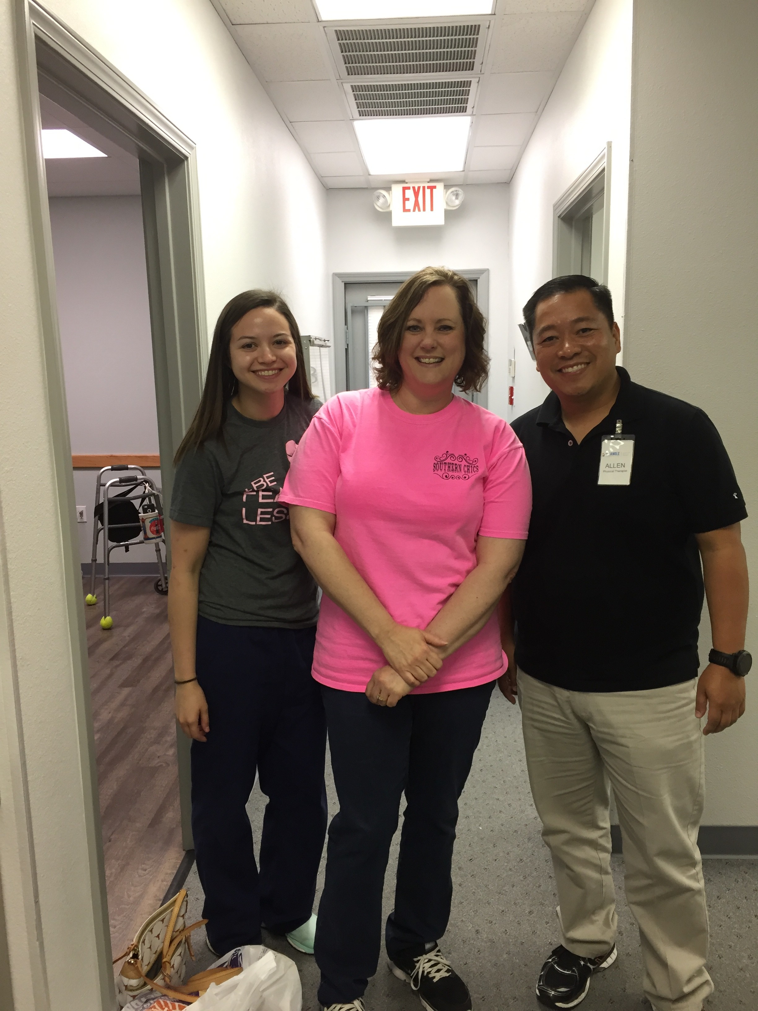 “When I started physical therapy, I was having painful episodes in my left shoulder and prevented movement of any kind. I sought help from several doctors with various opinions and one finally suggested PT. I was skeptical at first because I was sure there was more to my pain than a muscle issue, but was grateful for potential treatment. My first day here, the therapists pushed and poked and were able to duplicate the episodes. The therapist was certain it was a muscle weakness issue in my non-dominant arm. I’m not going to lie, the first few sessions were painful, but eventually, I felt my shoulder gaining strength. I started using the machines in the gym and was able to increase weight and reps fairly quickly. I could feel my muscles getting stronger. I haven’t had any episodes since starting at Triangle Therapeutics weeks ago. I’m proud of myself for challenging myself each time I came here and I’m looking forward to strengthening my arms on my own. If you are looking for advice – success doesn’t happen overnight, but in the end it is worth it! Keep it up! Thanks to Monica, Katrina and everyone else who helped build me back up! I’m going to miss you!”